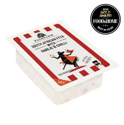 Feta that packs a punch! Fairview’s Jersey milk feta with roasted garlic and chilli. No brine, no fuss—simply The Fresher Feta