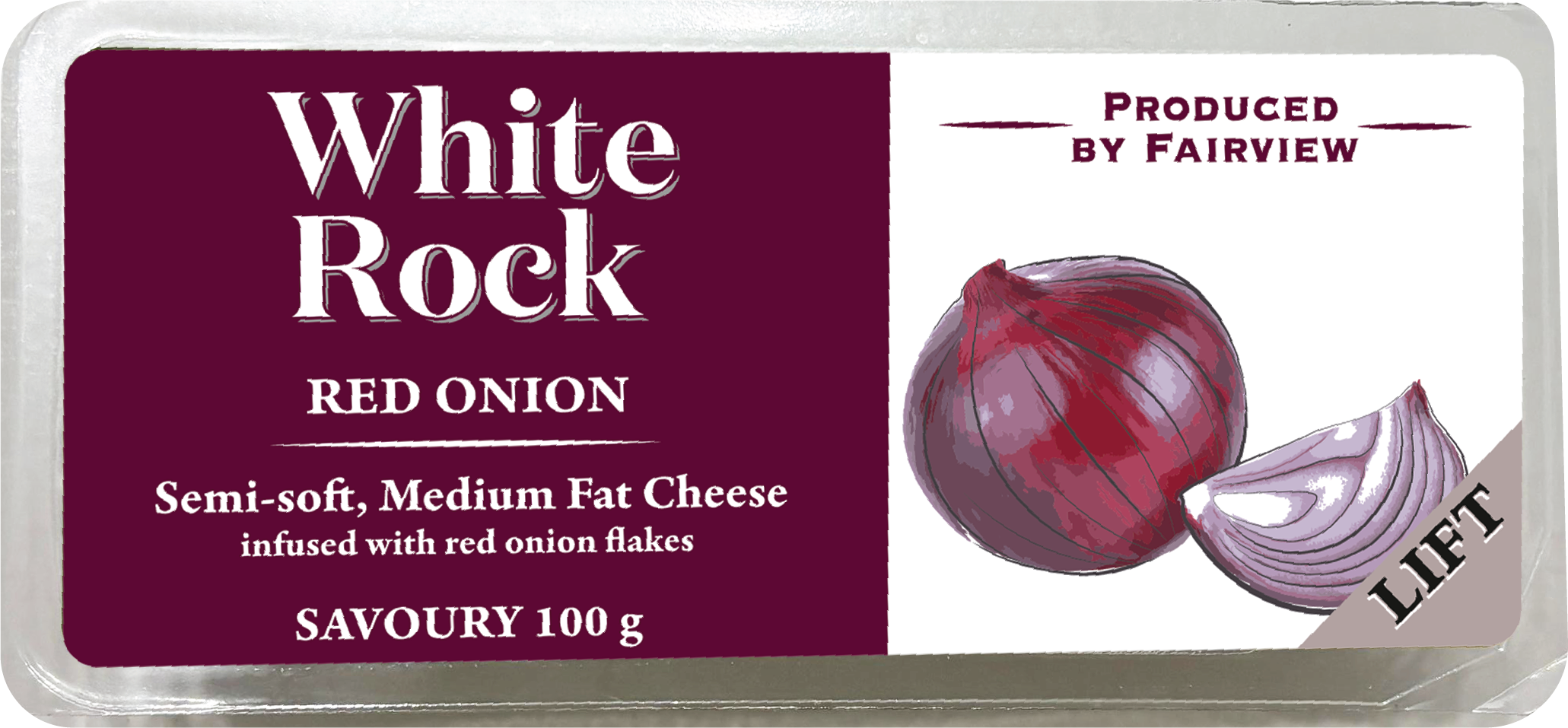 A crumbly dessert-style soft cheese infused with red onion flakes. A savoury addition to the White Rock range, offering gentle sweetness with a balanced depth.